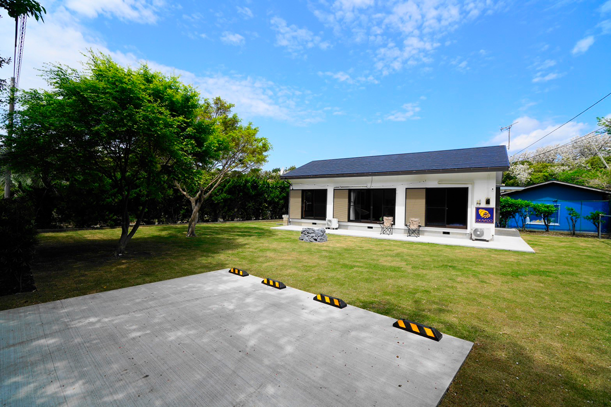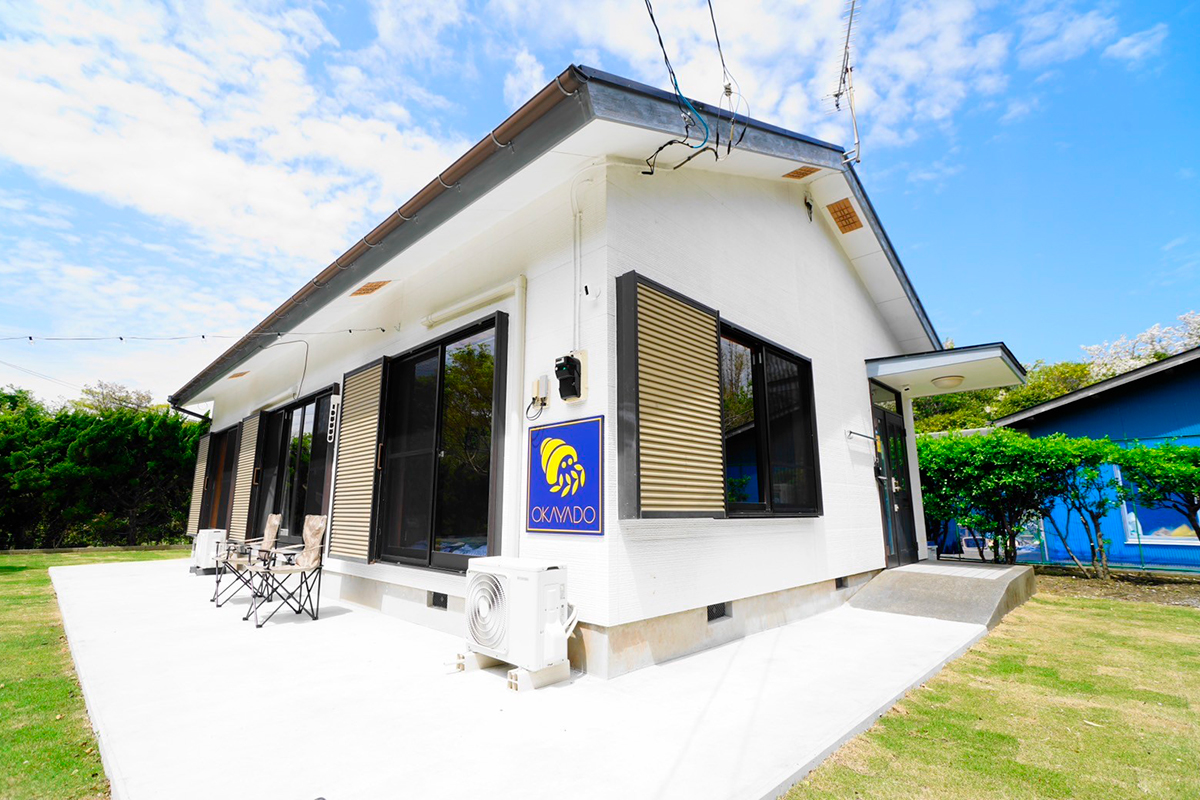 「OKAYADO」は日当たりが良くて鮮やかな緑につつまれた場所に建ち、まるでわが家のようにくつろげる空間です。自炊に必要な家電や食器、洗濯機まで一通りご用意しておりますので、長期滞在も安心です。
