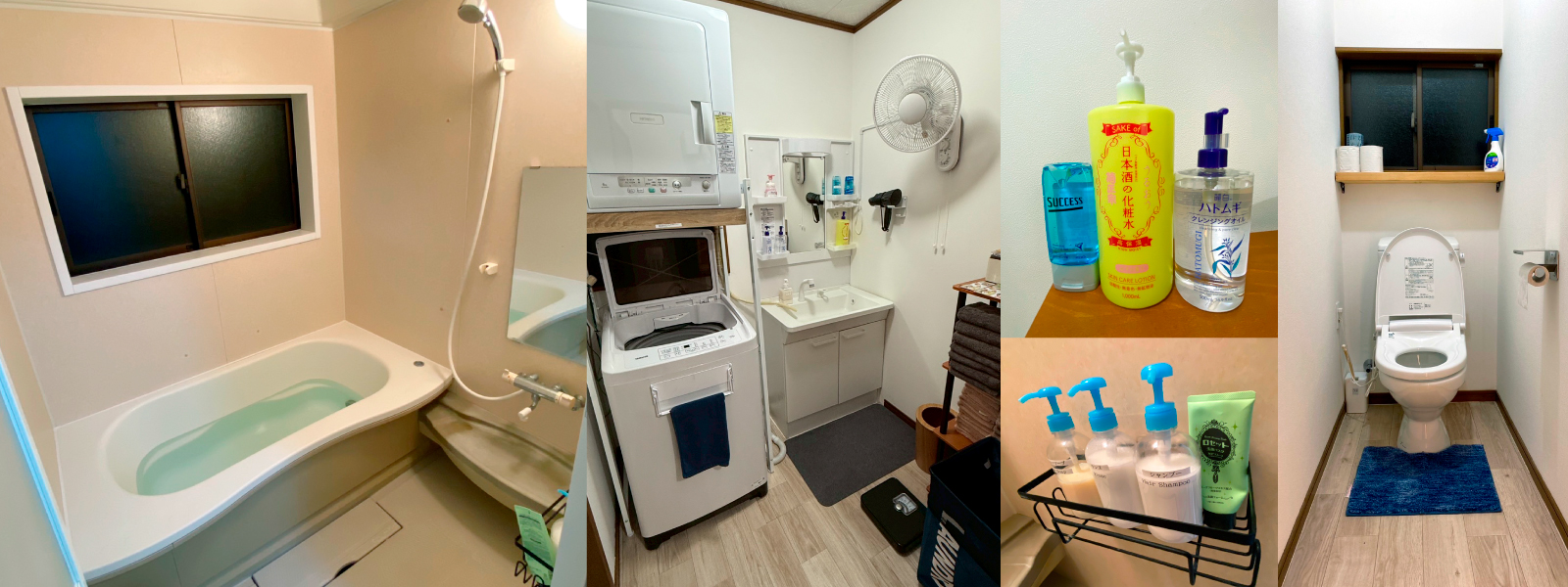 シャンプー、リンス、ボディーソープ、洗顔料、フェイスパック、入浴剤、ボディータオル、髭剃り、コットンセット、歯ブラシ、フェイスタオル、ボディータオル、ミストシャワー、化粧水、メイク落とし、シェービングジェル、ヘアドライヤー、洗濯機、衣類乾燥機、洗濯洗剤、柔軟剤